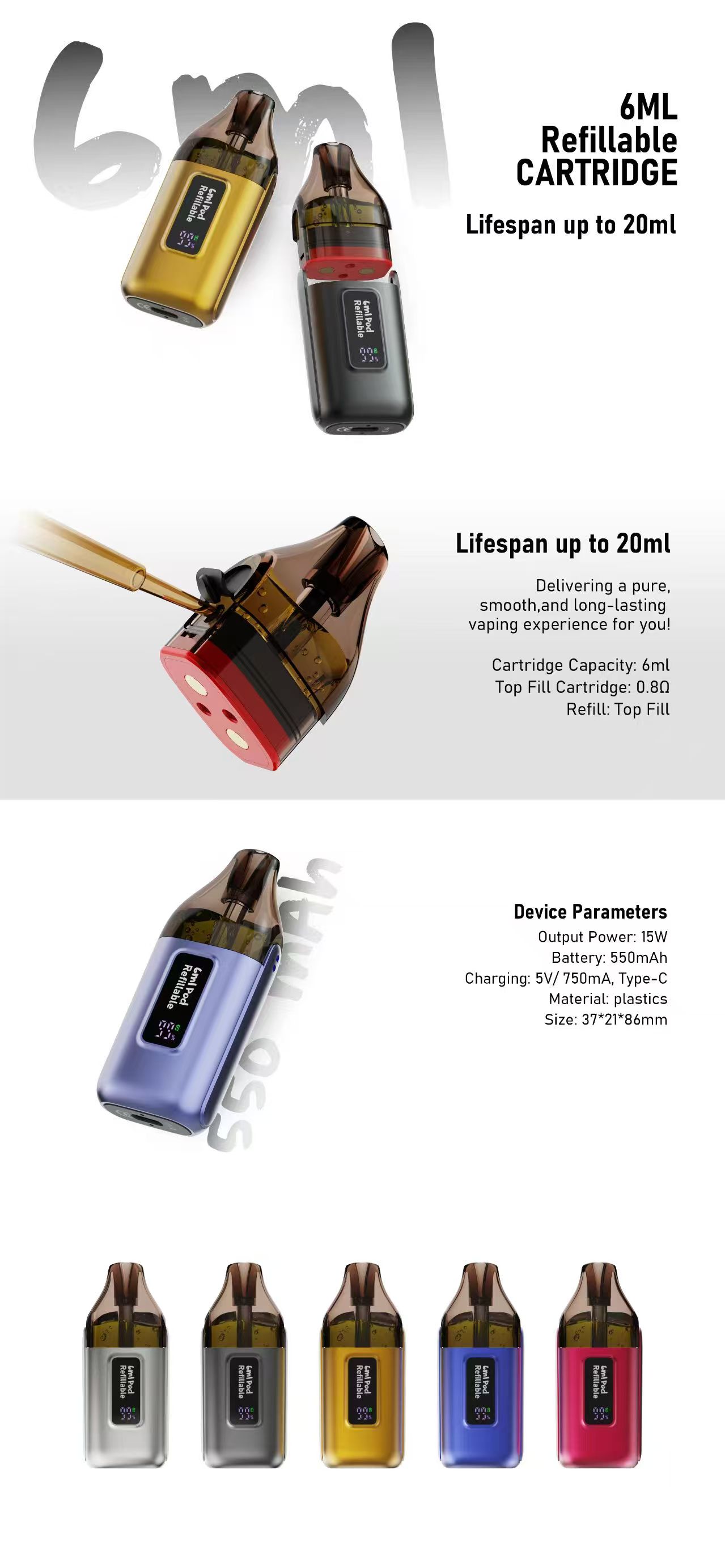Cartridge Capacity: 6mlTop Fill Cartridge: 0.80Refill: Top Fill